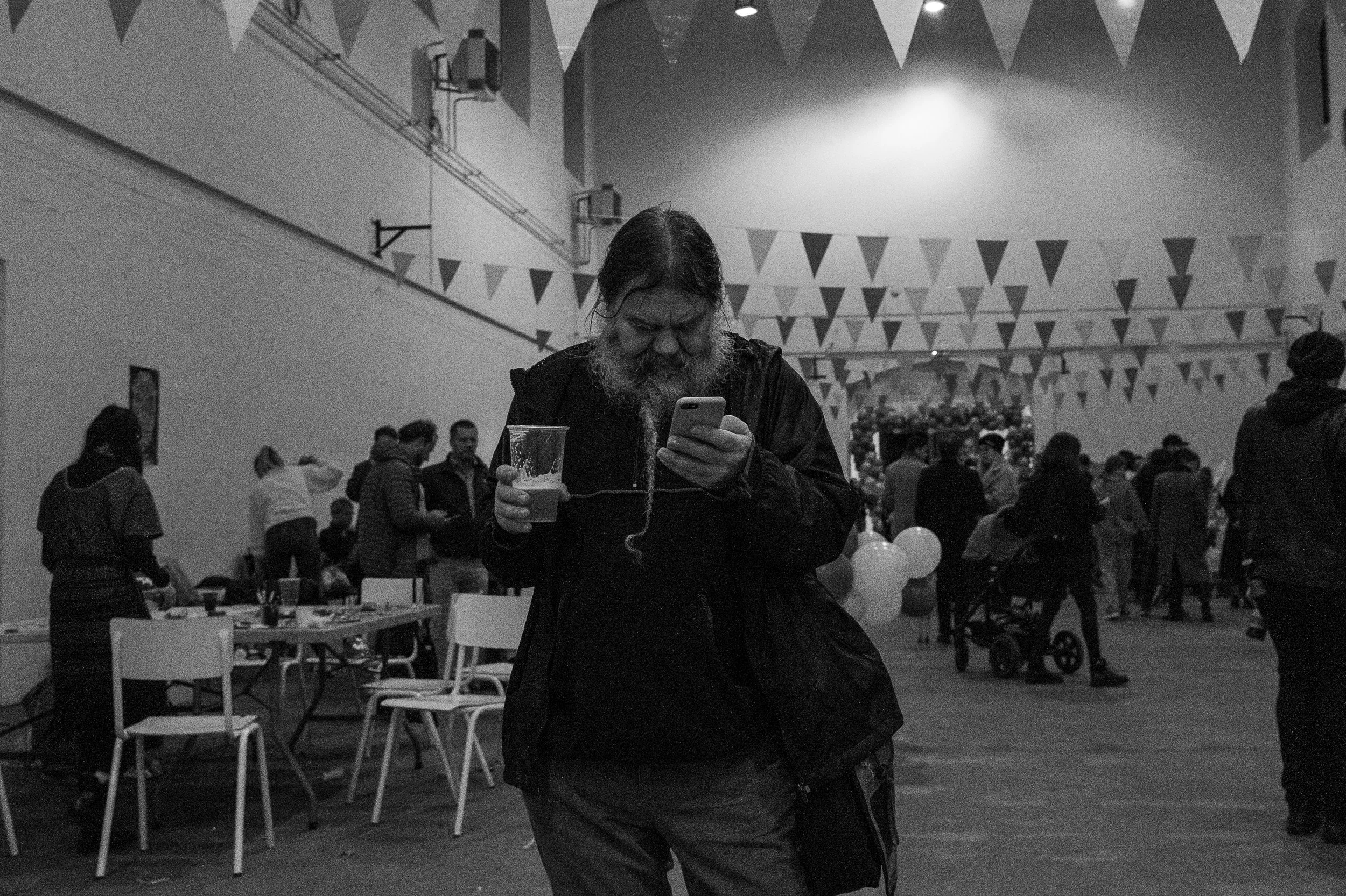 A collection of photographs offering a visual contrast between moments of deep engagement (associate) and detachment (disassociate) among people.
